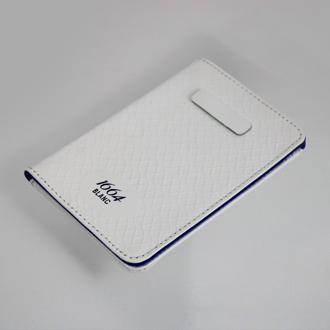1664 Blanc leather bill fold, with debossed cocarde pattern.